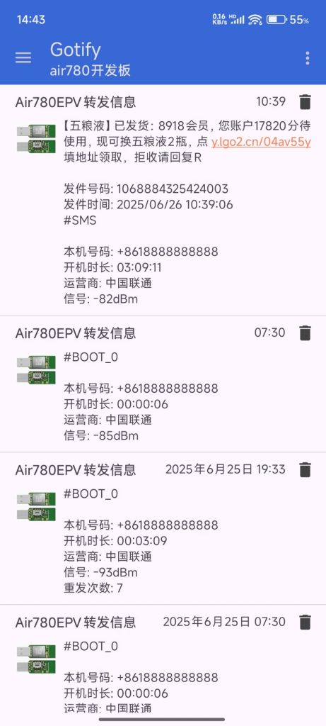 这里是我自己手机上的gotify消息通知客户端,我将短信转发发到了这个客户端上。