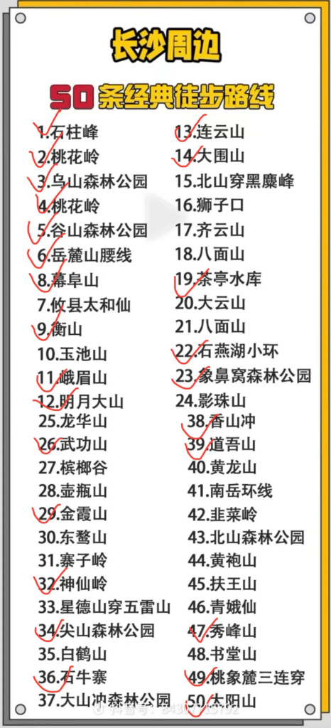长沙周边登山徒步列表